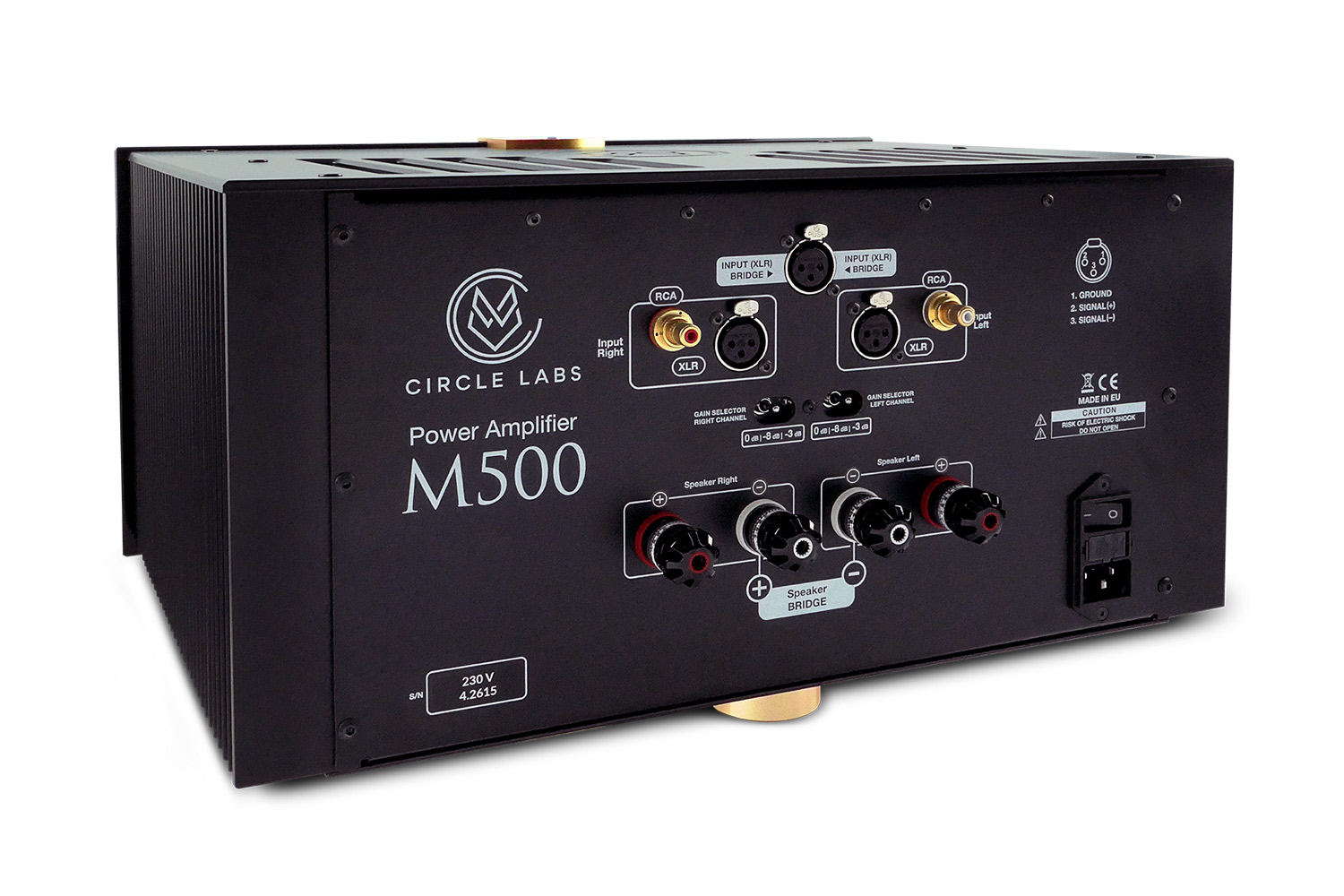 Innowacyjna konstrukcja stopni prądowych Circle Power zbliża M500 do topologii wzmacniaczy SE, gwarantując niezrównaną detaliczność, naturalną barwę dźwięku i jednocześnie pełną kontrolę nad niskimi tonami, typową dla wzmacniaczy wysokosprawnych. Wejściowe stopnie wykorzystują najnowsze ultra-niskoszumowe tranzystory J-FET Burr-Brown, a stopnie prądowe M500 bazują na potężnych, wysokoprądowych tranzystorach bipolarnych Sanken, co zapewnia dynamiczny, czysty dźwięk z niespotykaną kontrolą nad głośnikami.